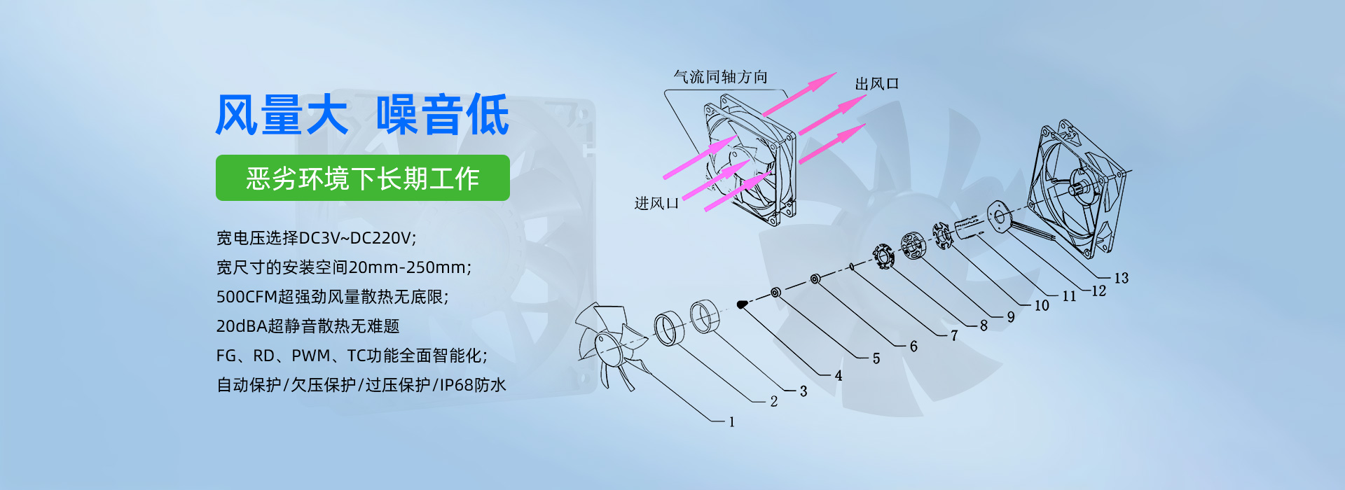 深圳市毅榮川電子科技有限公司于2005年創(chuàng)立于中國(guó)深圳、是一家專(zhuān)業(yè)研發(fā)、生產(chǎn)、銷(xiāo)售散熱風(fēng)扇的高科技企業(yè)。所生產(chǎn)的直流風(fēng)扇、交流風(fēng)扇、鼓風(fēng)機(jī)、防水/防塵風(fēng)扇、EC變頻風(fēng)扇、直流散熱風(fēng)扇、汽車(chē)散熱風(fēng)扇、靜音散熱風(fēng)扇、支架散熱風(fēng)扇、渦輪增壓風(fēng)扇、直流散熱風(fēng)機(jī)、直流離心風(fēng)機(jī)、直流鼓風(fēng)機(jī)、鼓風(fēng)機(jī)廠(chǎng)家、新能源風(fēng)扇、無(wú)刷馬達(dá)等,已廣泛應(yīng)用于:通訊設(shè)備、UPS電源、醫(yī)療器械、電焊機(jī)、工控設(shè)備、家用電器、空氣凈化行業(yè)、汽車(chē)行業(yè)、投影儀、美容儀器、運(yùn)動(dòng)器材等行業(yè)領(lǐng)域。